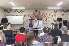 すみよしクラブは、10 月15 日(水曜日)午前10 時から住吉会館で、10 月定例会を開催しました。事務局からの連絡事項で始まり、会長挨拶、誕生月該当者4名へ「誕生祝い品」が贈られました。(出席者は28名。)