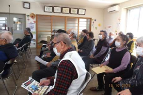 「詐欺に遭わないためのビデオ観賞」と「悪質買取業者についての寸劇」をナレーター役、悪田君役、狡井さん役、カモ代さんの役を会員が演じ、笑いをとっていました。