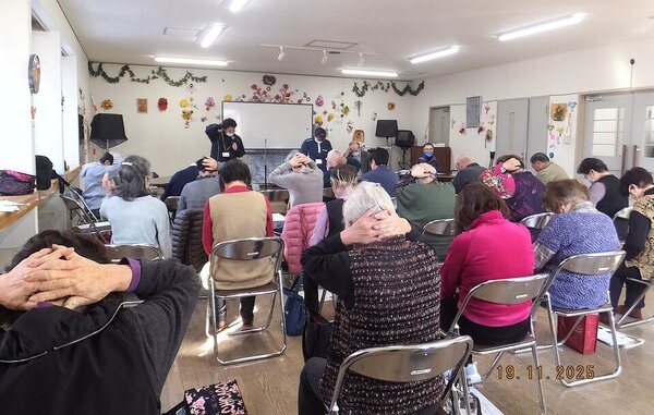 お家でできる体力づくり、お勧めの服装、安全な歩き方についての実演に納得されていました。少しでも身体を動かして、この冬を元気に乗り切りましょう。
