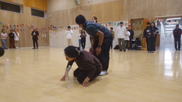受付にて紅白に分け、約44人が競技に参加しました。そのうち、外国出身の方は約6割でした。