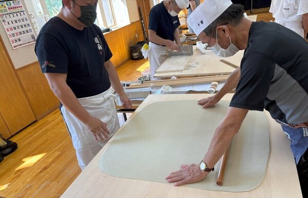 研修会では初めてお2人そろったので、ご挨拶をいただきました。楽しんでそば打ちを身につけられるよう、よろしくお願いします。