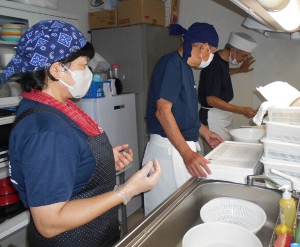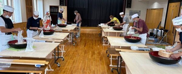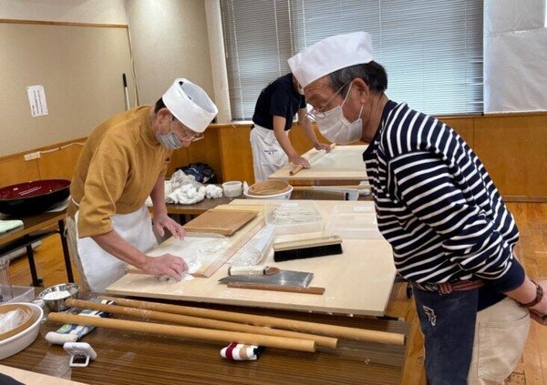 常連の方々です。黙々と作業されています。定期的なそば打ちで、安定した技術を維持しています。