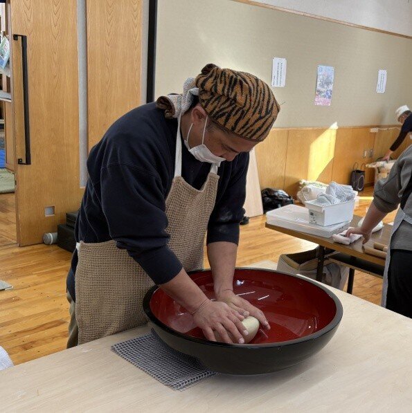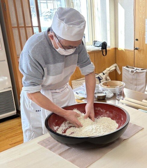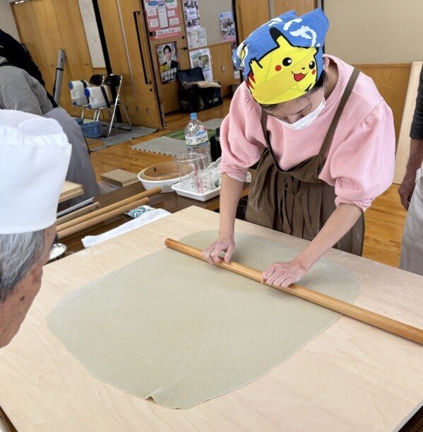 そば粉の扱いに戸惑っておられましたが、集中して頑張っておられました。