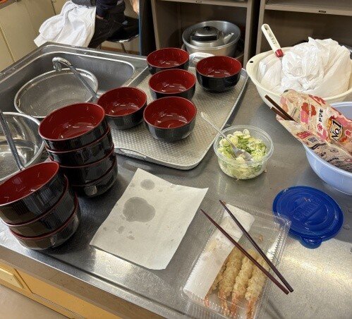 本日の試食です。海老天入りで、100円増し。「たねもの」はこのほかにかき揚げなどもあります。その他、とろろ入りなども作っています。