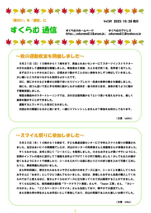 > すくらむ通信vol59 2025/10/28発行